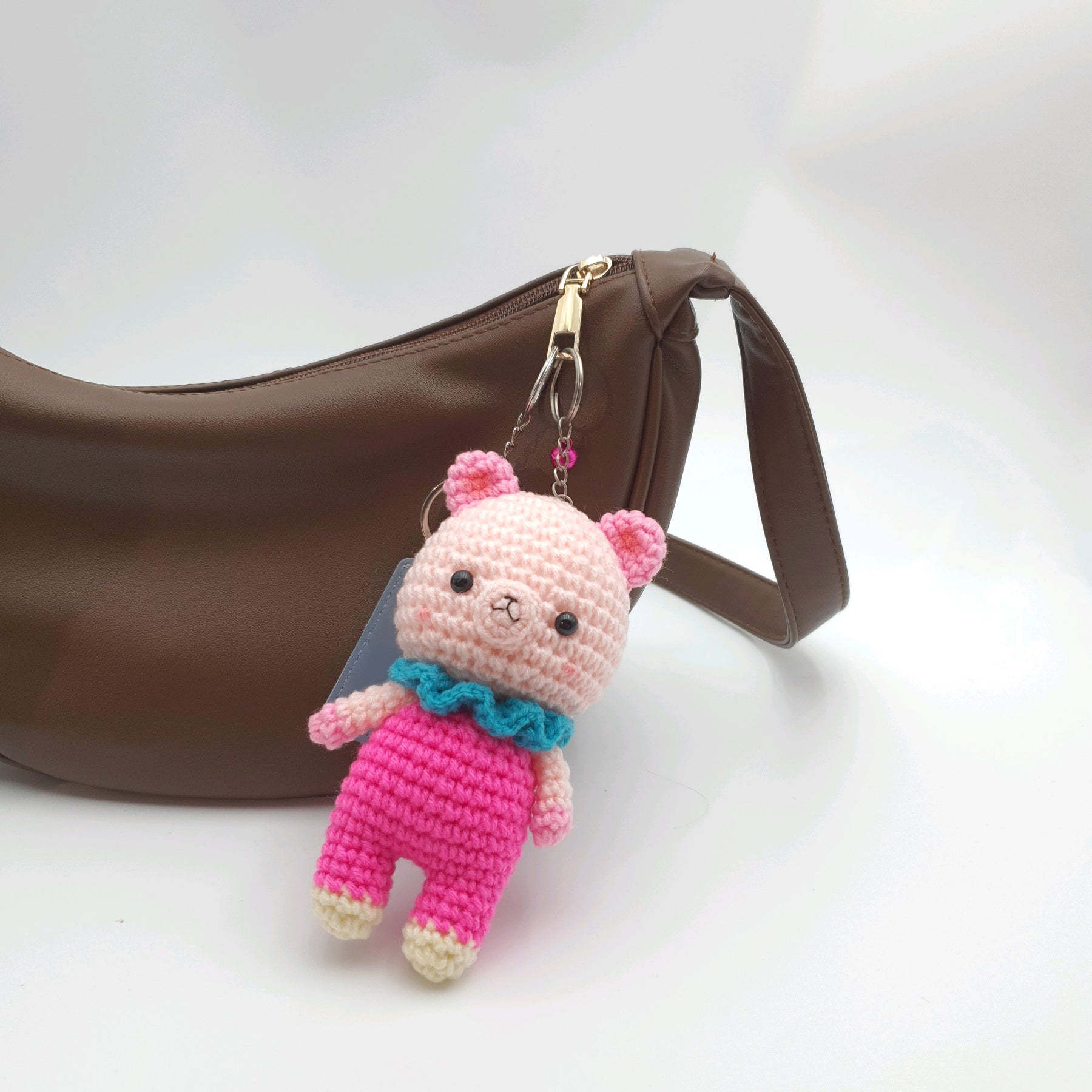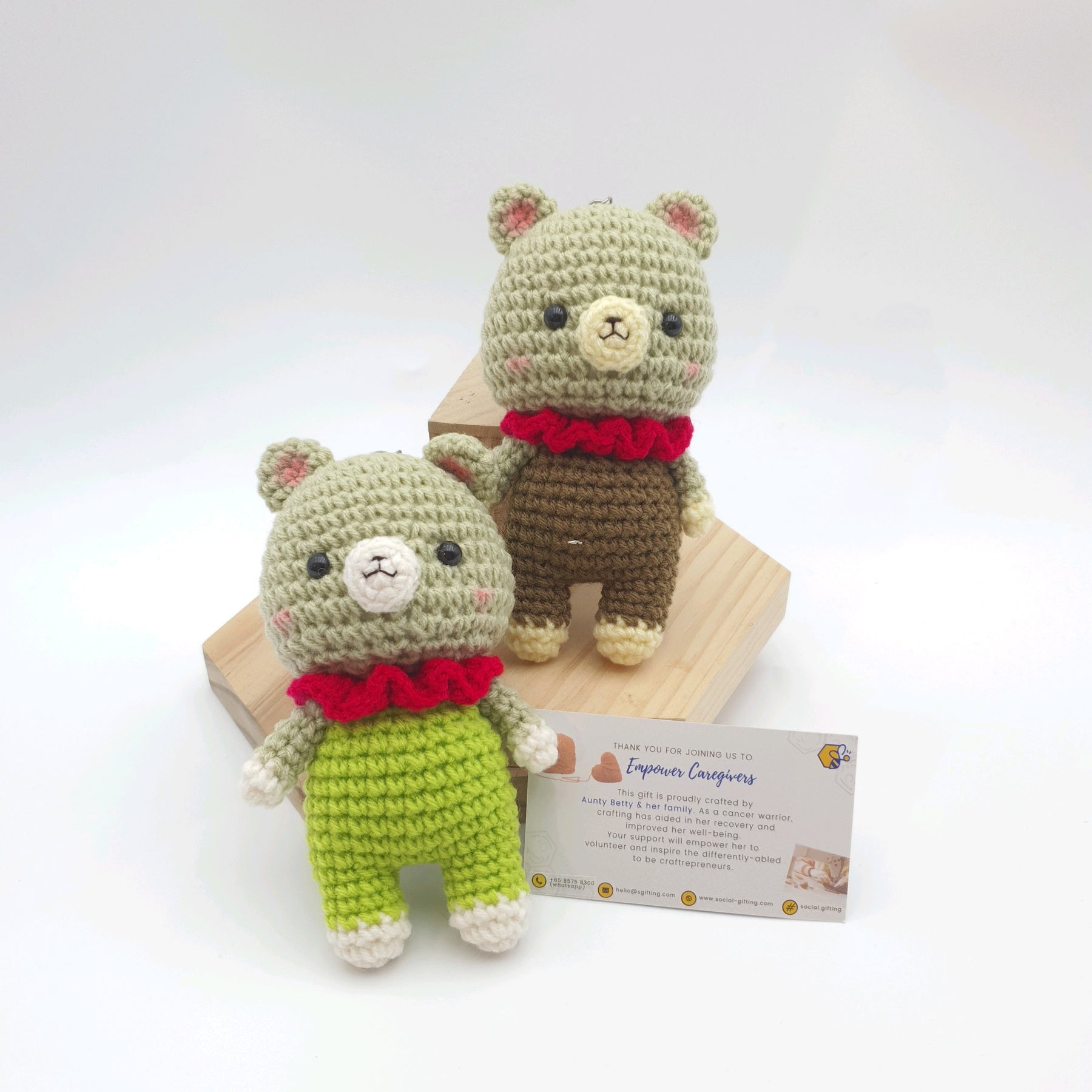 This adorable crocheted bear features a charming ruffled collar that adds a touch of whimsy and handmade elegance to any collection. Perfect as a thoughtful gift or cherished keepsake, this artisan-crafted plush combines cozy appeal with delightful detail work.