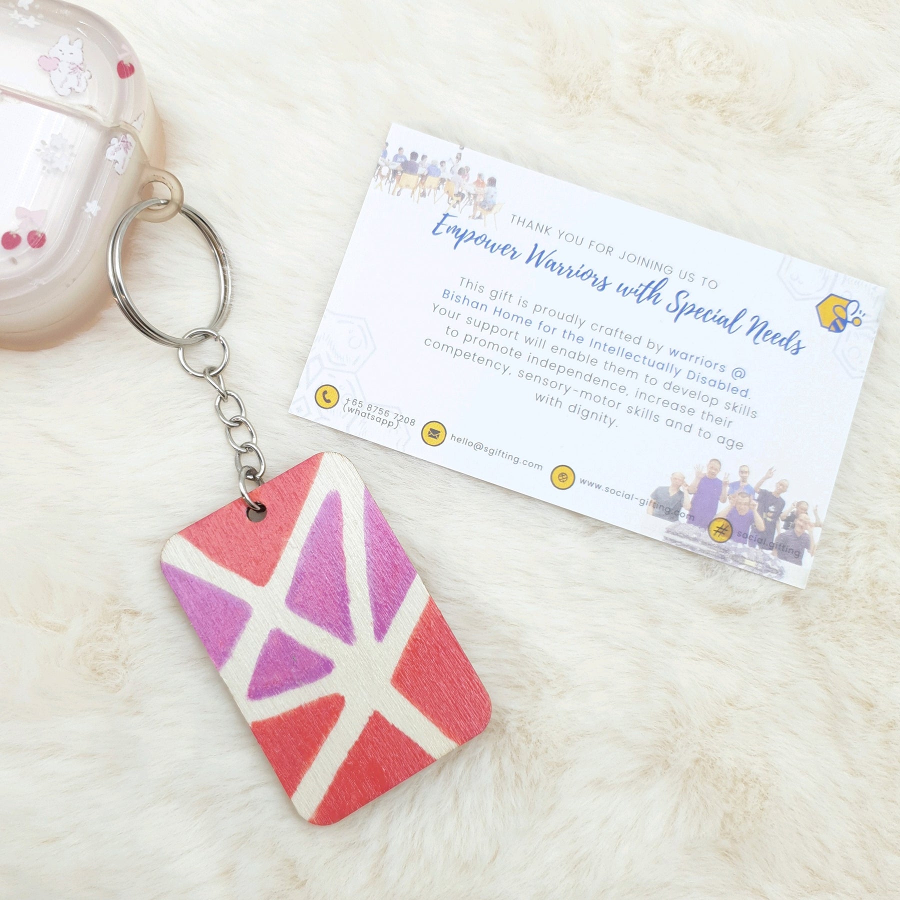Add a pop of personality to your everyday essentials with this painted wooden keychain, decorated with charming sticker accents. Each piece is hand-painted and thoughtfully assembled, making every keychain a unique blend of colour, creativity, and fun.