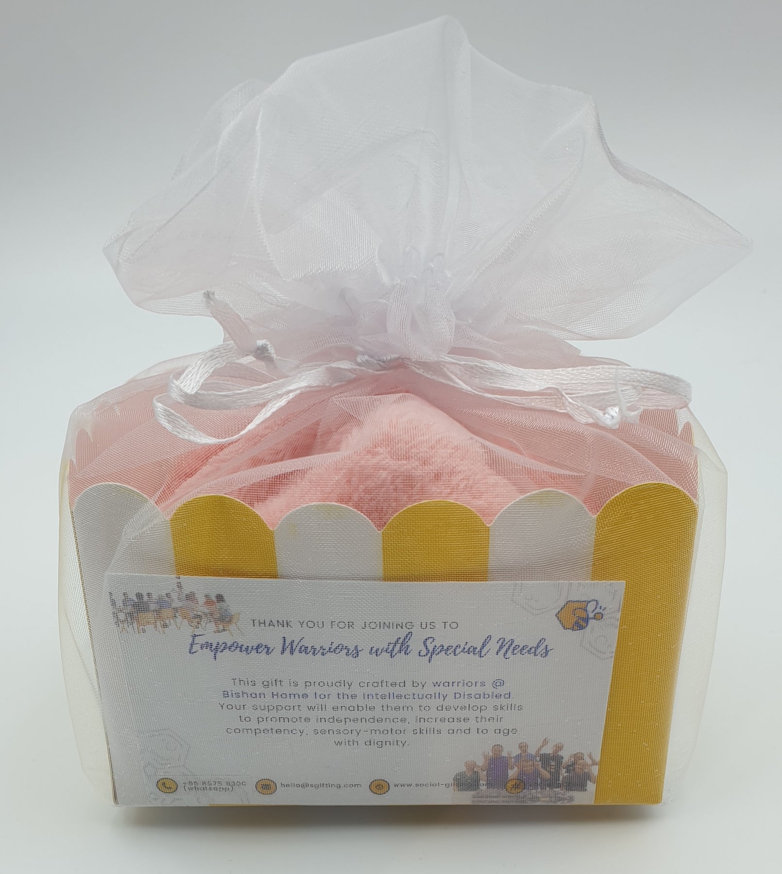 This gift is proudly crafted by warriors @ Bishan Home for the Intellectually Disabled. Social Gifting partners Bishan Home by providing weekly crafting sessions to keep them engaged & improve their fine motor skills. Your support will help enable them to increase their competency and age with dignity.