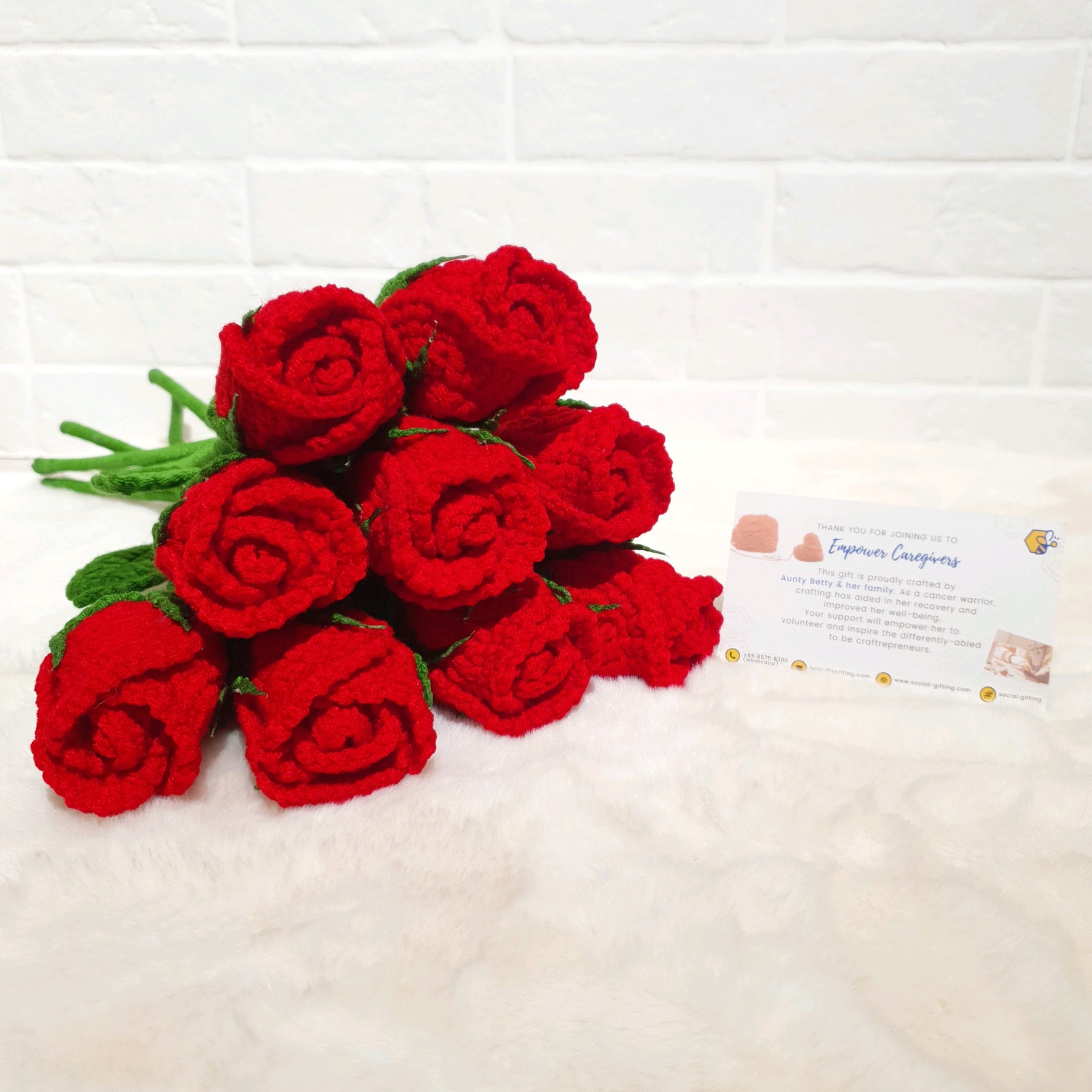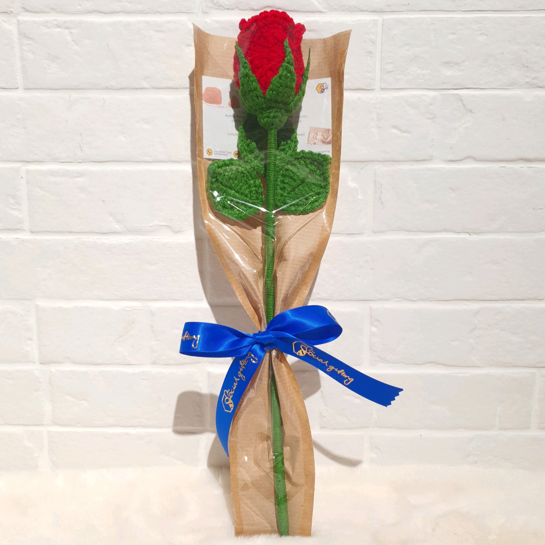 A delicately crocheted rose bud, thoughtfully handcrafted to capture the beauty of a budding flower in a lasting form. Its soft, compact design adds a subtle touch of charm to any space or gift. A meaningful piece that symbolises new beginnings, hope, and quiet affection.