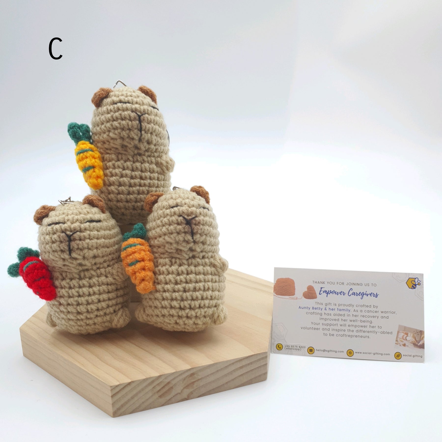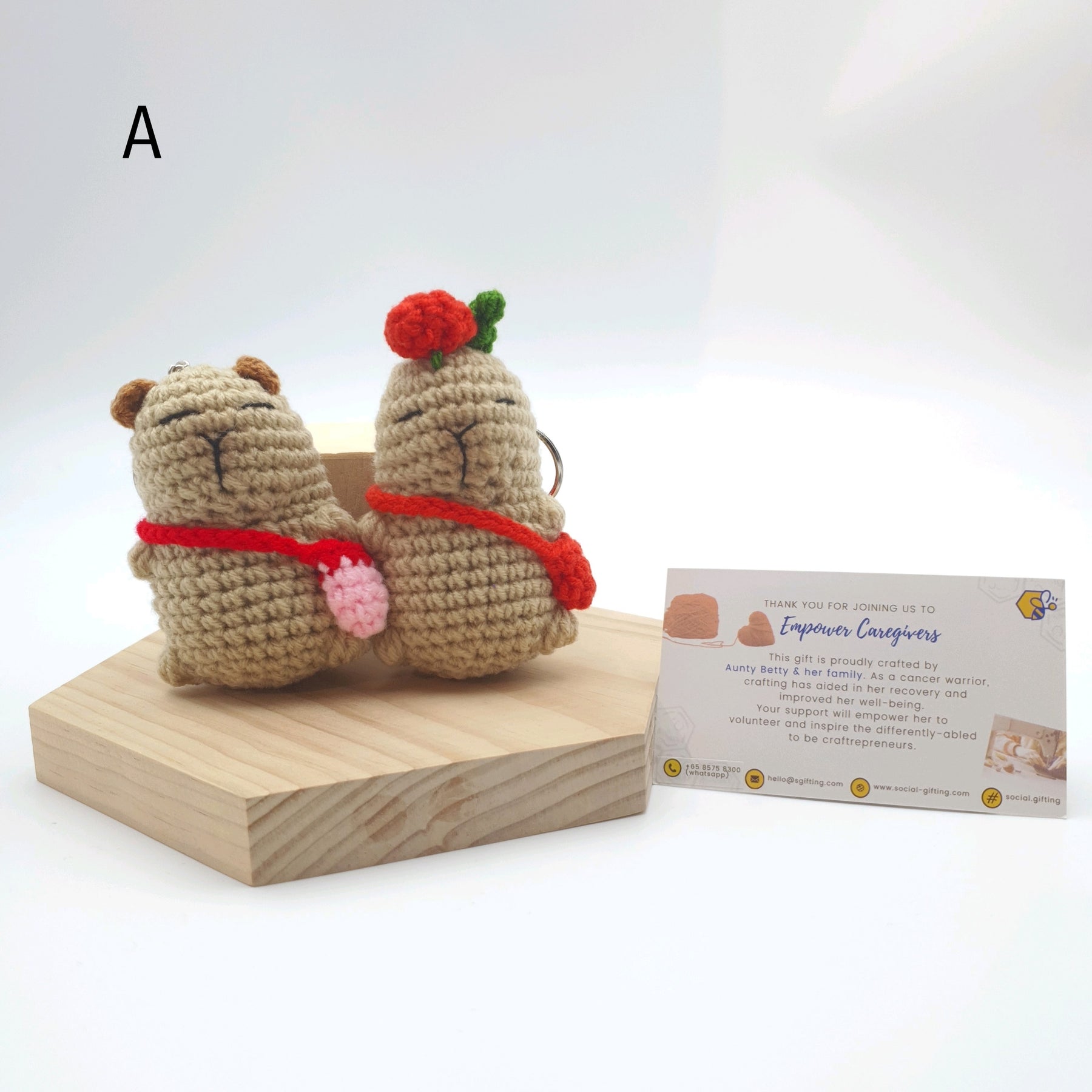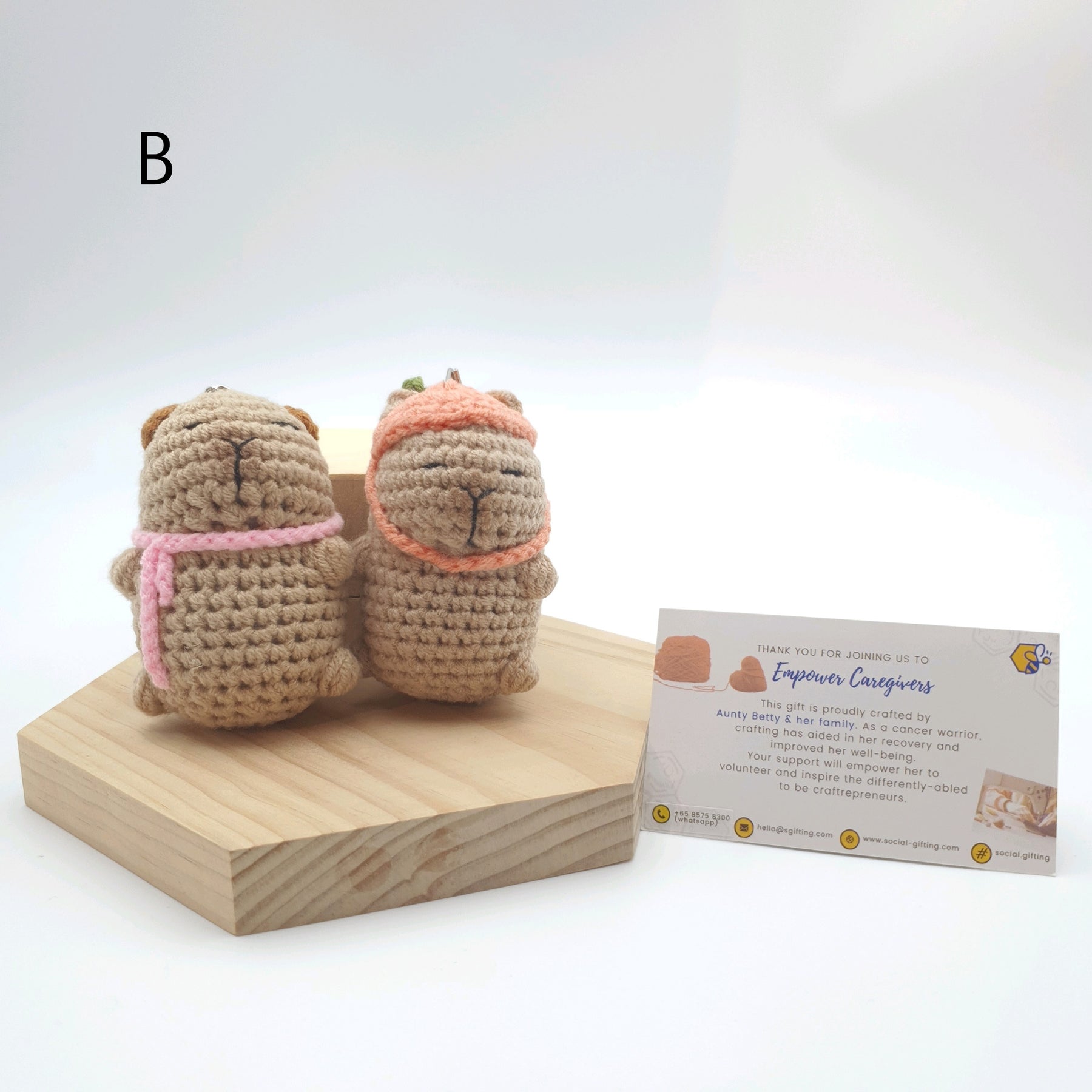 Discover the magic of handmade craftsmanship with this delightful hand-crocheted capybara. Each stitch is lovingly created to capture the gentle charm of these beloved creatures, making it an irresistible addition to your collection or the perfect heartfelt gift that shows you care about quality and uniqueness.