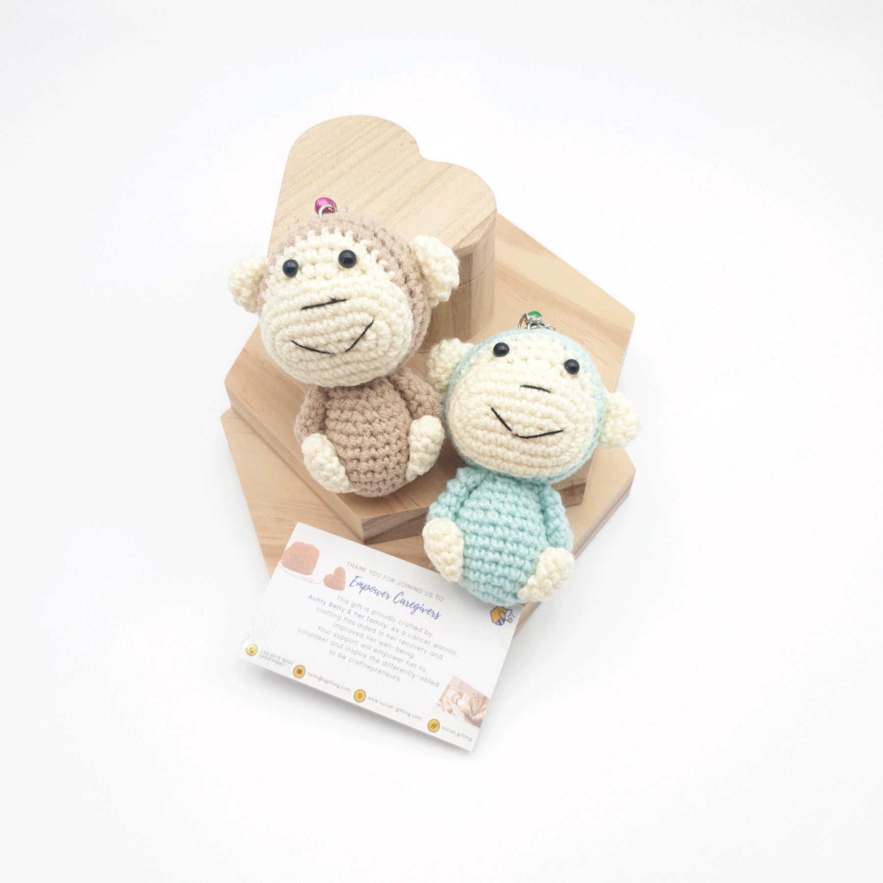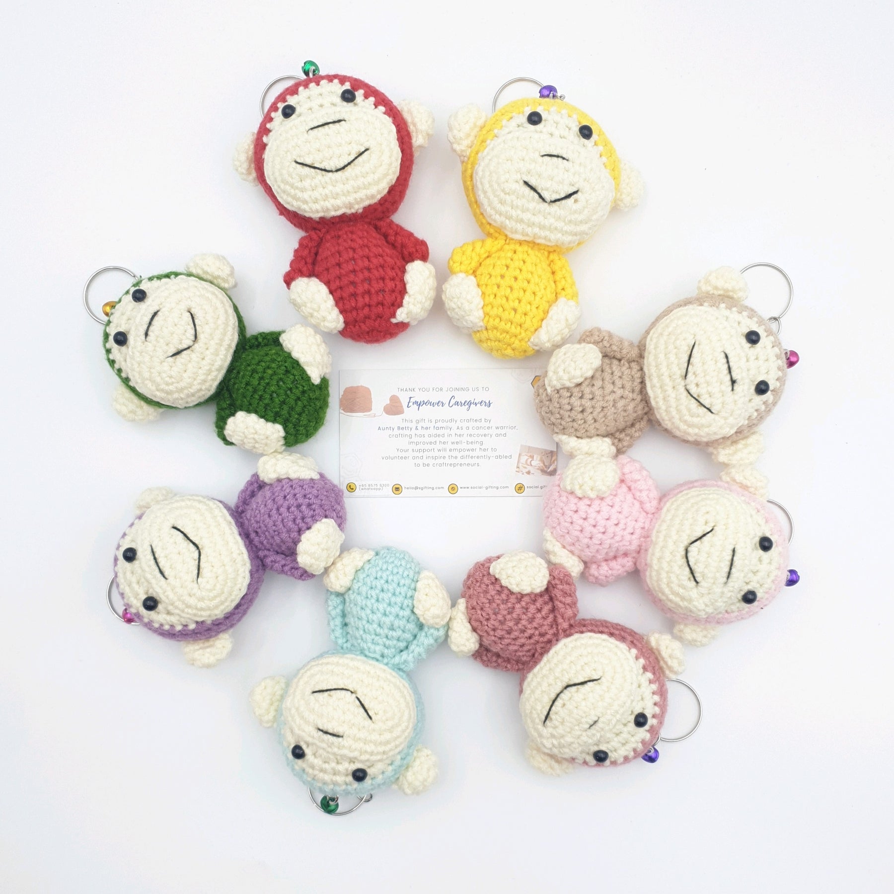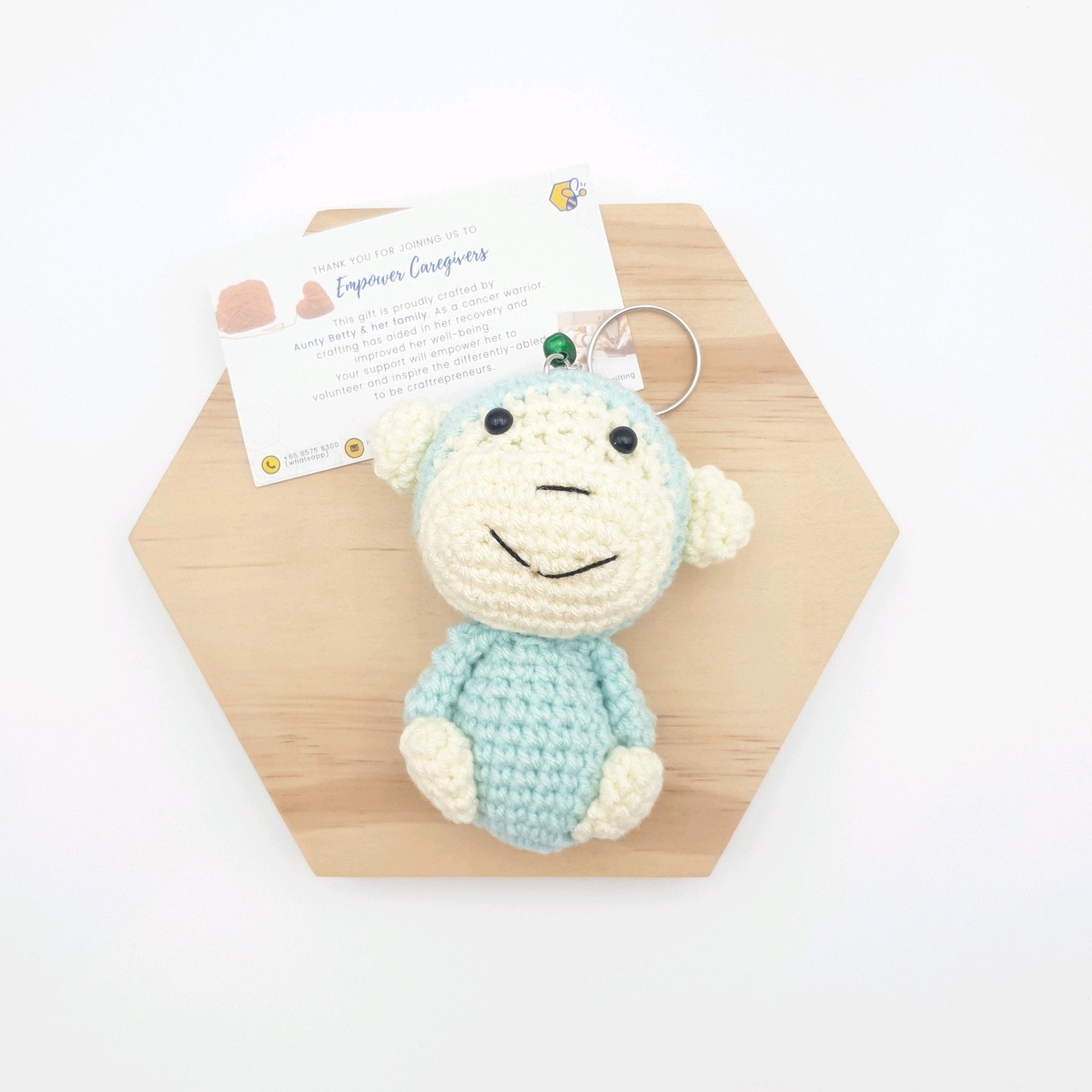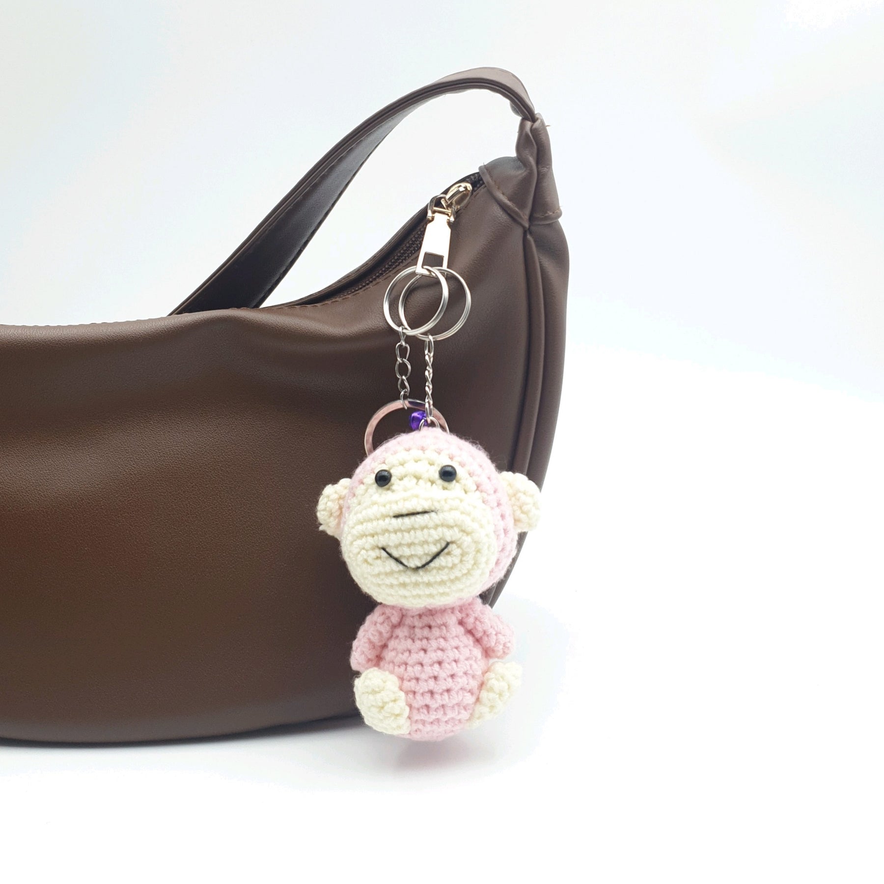 A playful Hand Crocheted Monkey Keyring with adorable handcrafted details. A fun little companion for your keys, bags, or as a cute gift.