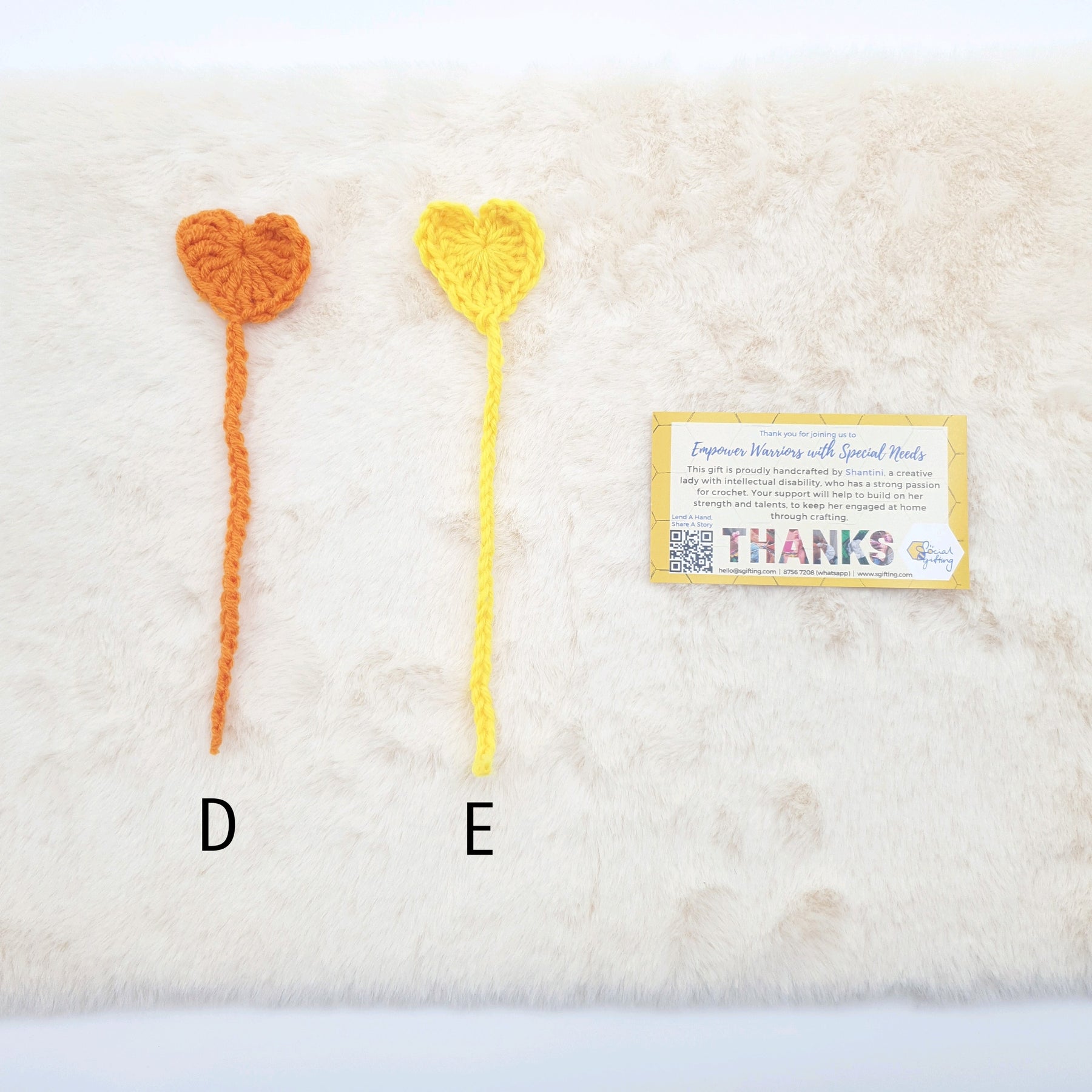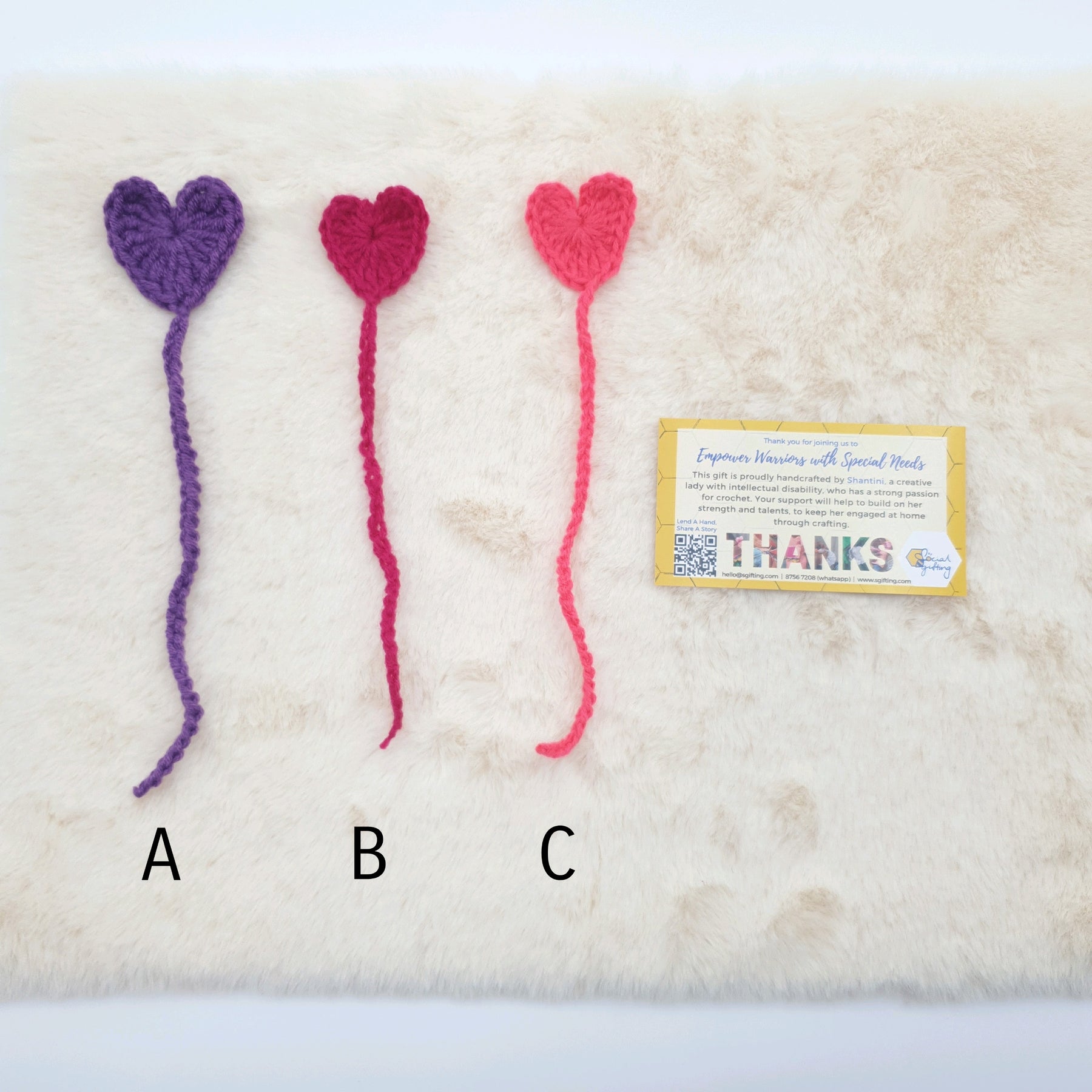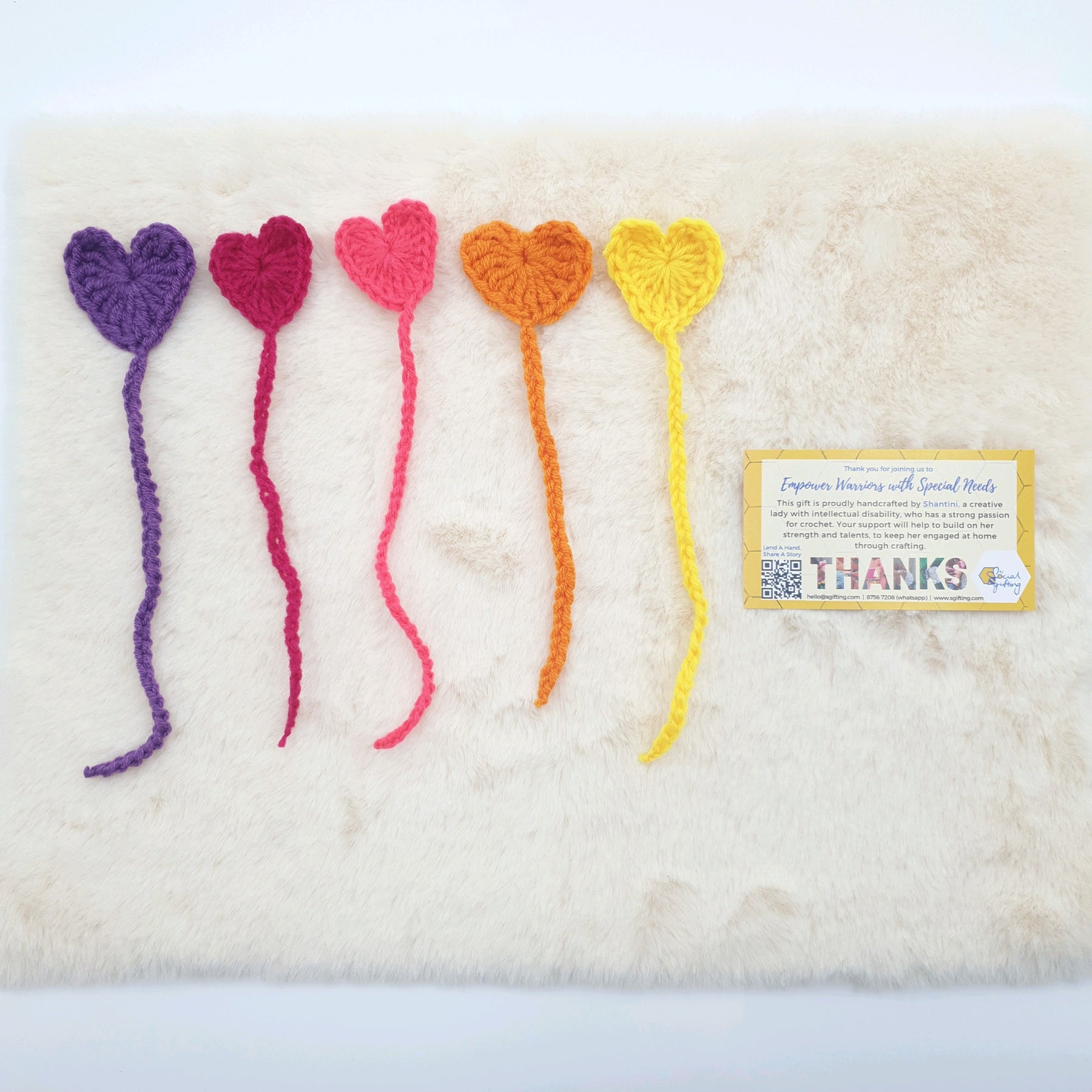 This gift is proudly crafted by Shantini, an intellectual disabled warrior. Despite her low intellectual disability and emotional imbalance, she is a creative individual with a strong passion for crochet. Show your support to allow her to gain greater confidence through her love for crochet and talent.