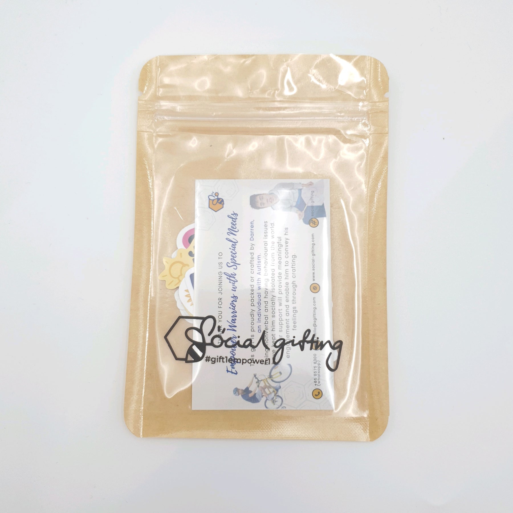 This gift is packed by Darren, a person with Autism. Being non-verbal and kept socially isolated at home, your gift will allow him to express his feelings through crafting activities. We hope that as Darren is kept meaningfully engaged at home, his behavioural issues can slowly improve as well.